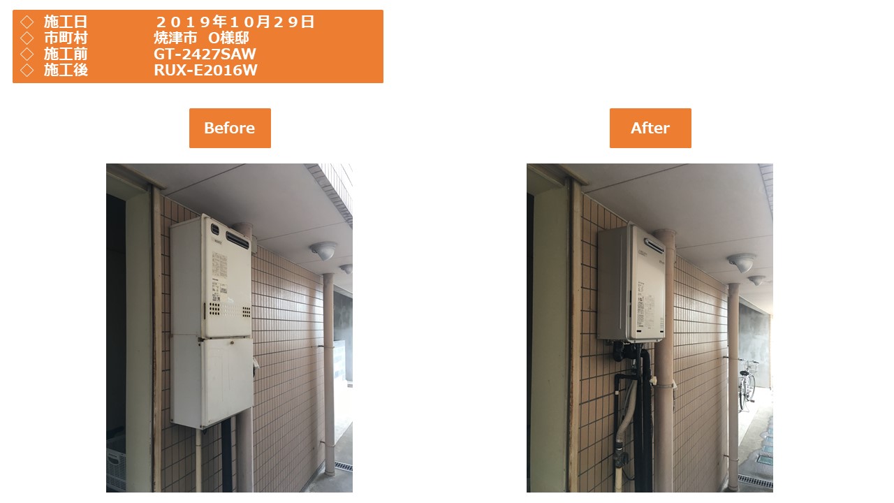 本日は、焼津市での給湯器施工事例をアップさせていただきます。