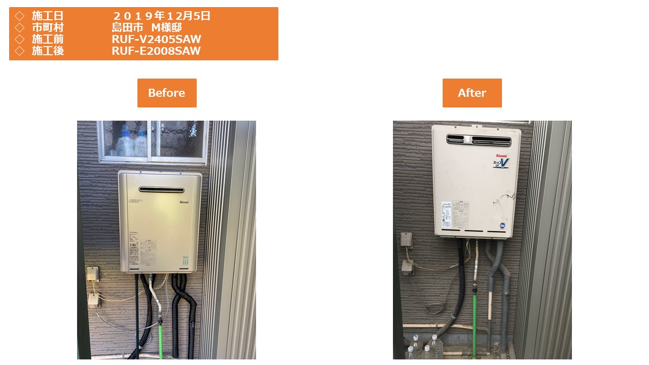 本日は、島田市での給湯器施工事例をアップさせていただきます。