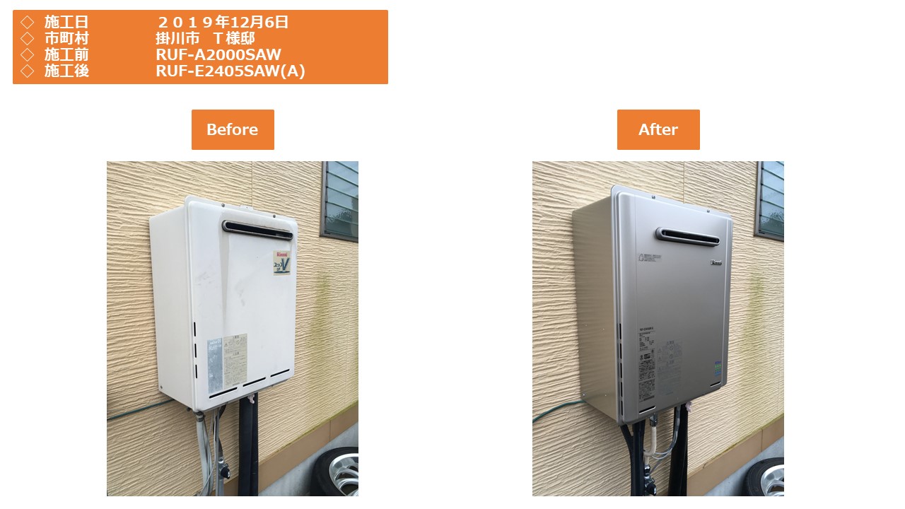 本日は掛川市での給湯器施工事例をアップさせていただきます。