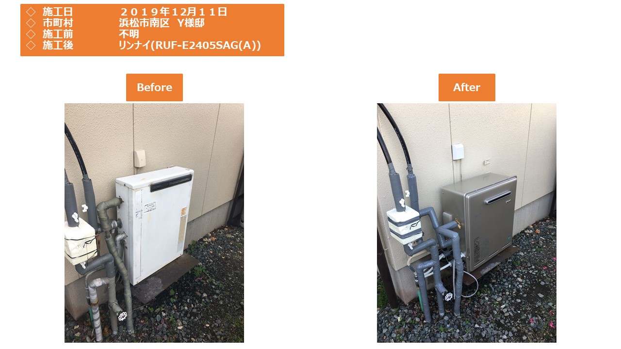 本日は、浜松市南区での給湯器施工事例をアップさせていただきます。