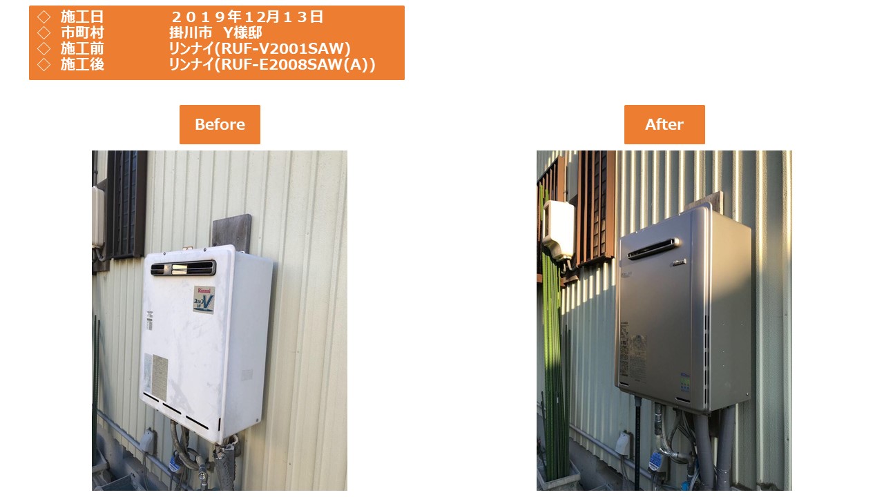 本日は、掛川市での給湯器施工事例をアップさせていただきます。
