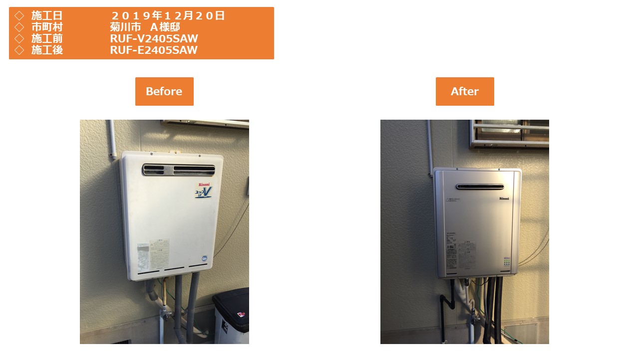 今回のお客様はリンナイの「 RUF-V2405SAW 」からリンナイの「 RUF-E2405SAW 」への交換でした。