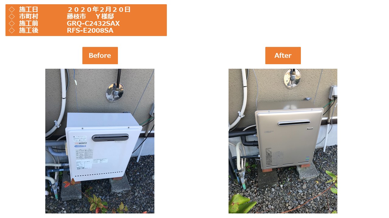 本日は藤枝市での給湯器施工事例をアップさせていただきます。