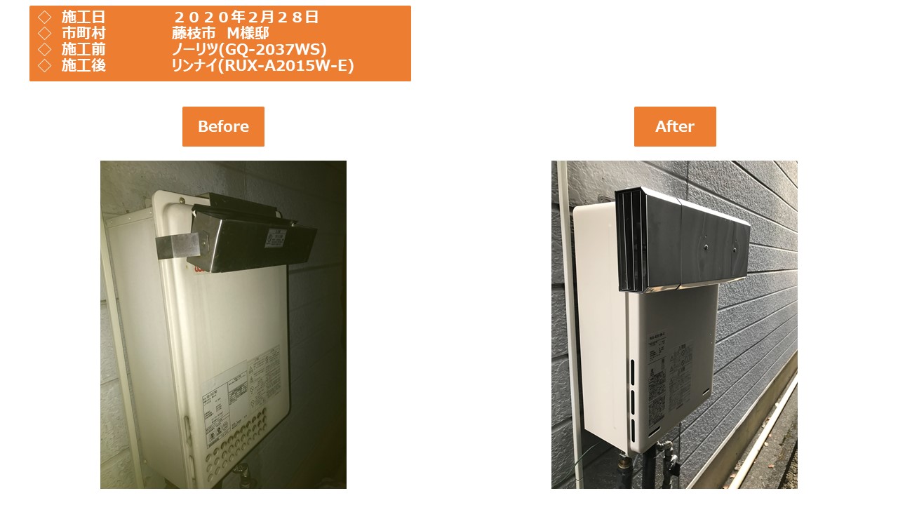 本日は藤枝市での給湯器施工事例をアップさせていただきます。