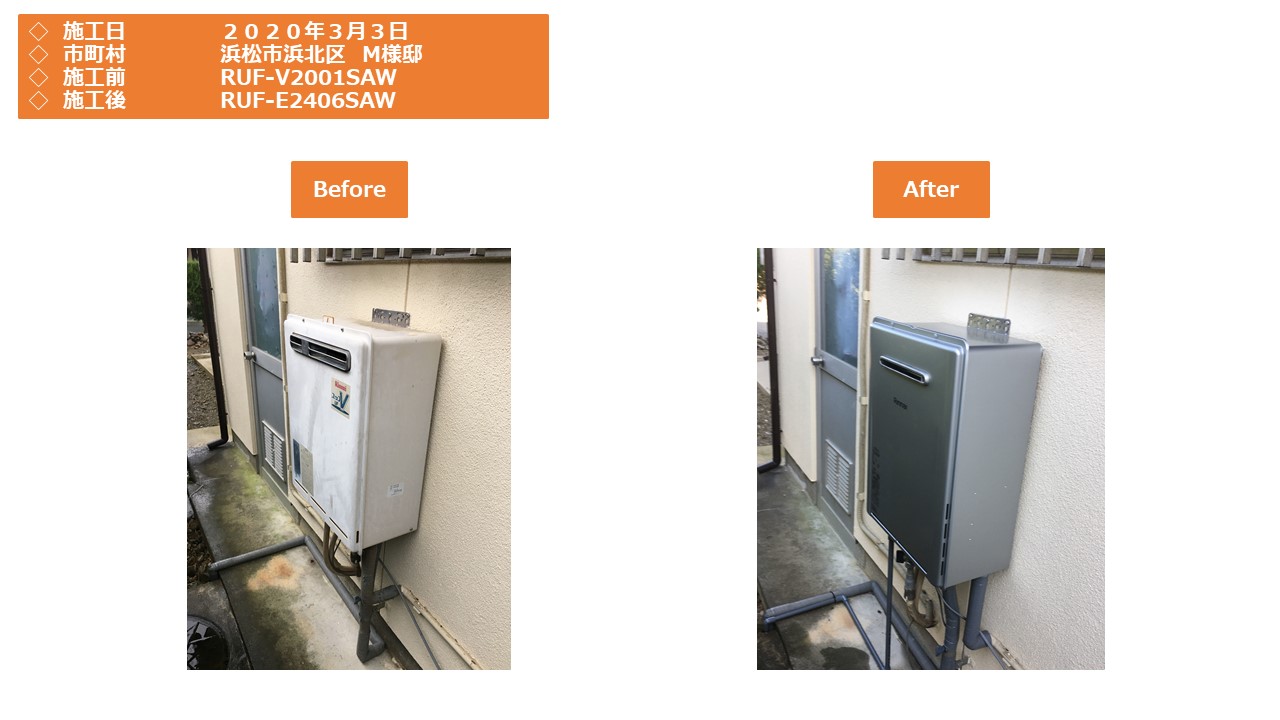 本日は浜松市北区での給湯器施工事例をアップさせていただきます。