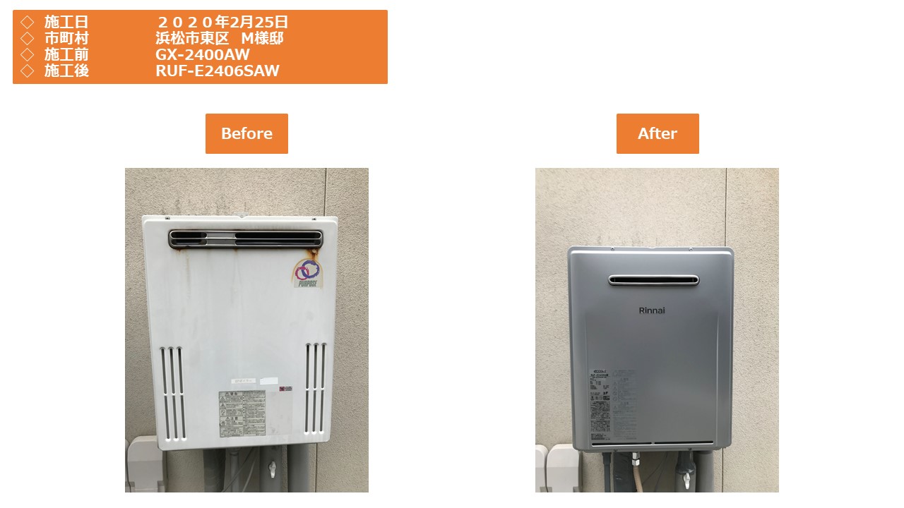 本日は浜松市東区での給湯器施工事例をアップさせていただきます。