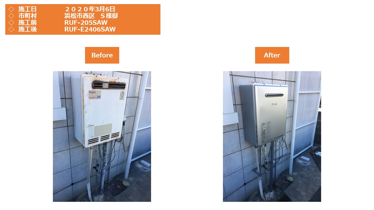 本日は浜松市西区での給湯器施工事例をアップさせていただきます。