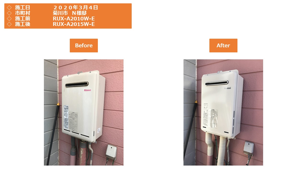 今回のお客様はリンナイの「 RUX-A2010W-E 」からリンナイの「 RUX-A2015W-E 」への交換でした。