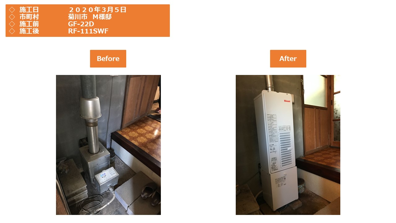 今回のお客様は長府の「 GF-22D 」からリンナイの「 RF-111SWF 」への交換でした。