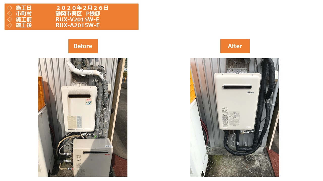本日は、静岡市葵区での給湯器施工事例をアップさせていただきます。