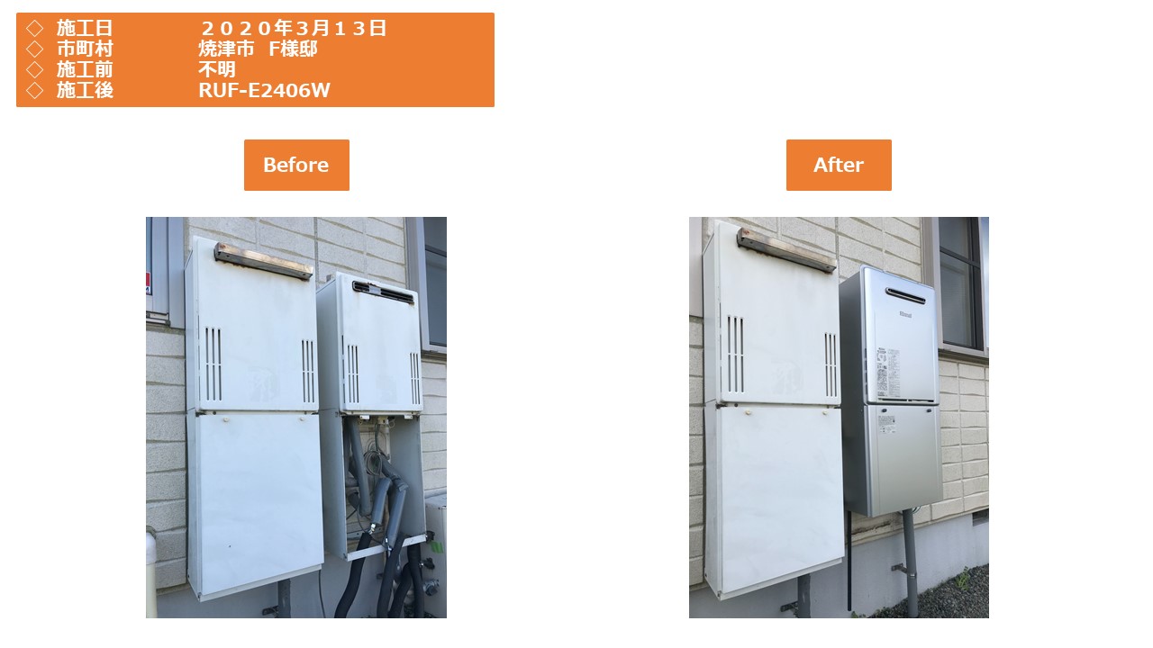 ガス風呂給湯器の取替工事 静岡県焼津市 リンナイ RUF-E2406W の施工事例