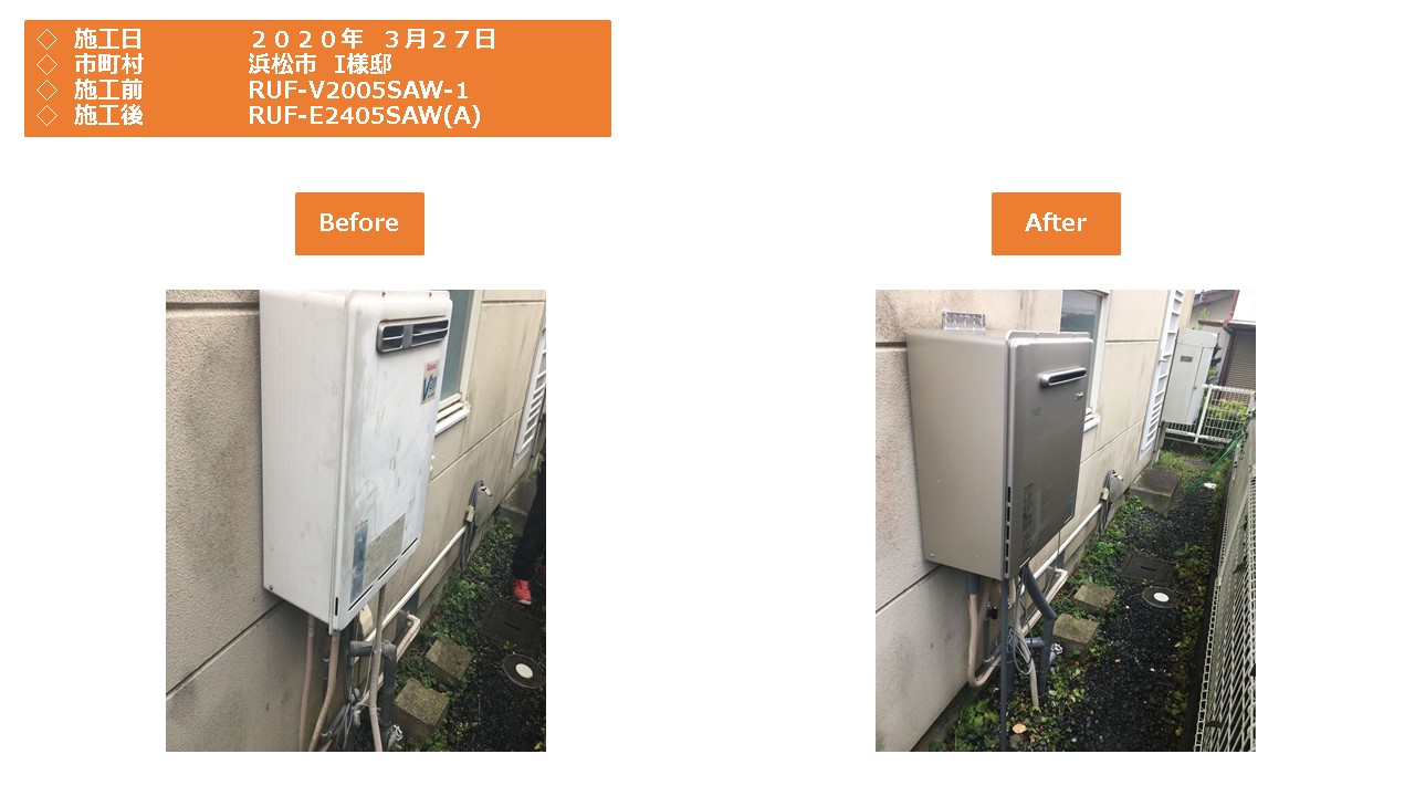 本日は浜松市での給湯器施工事例をアップさせていただきます。