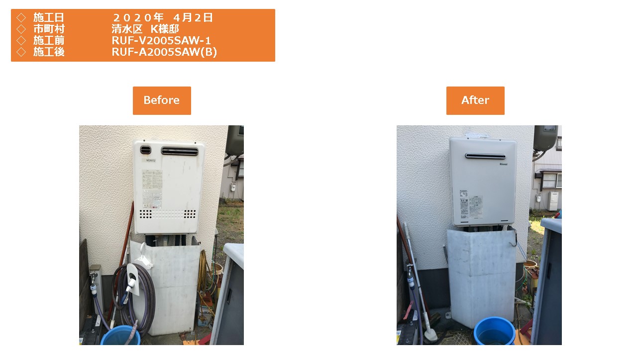 本日は静岡市清水区での給湯器施工事例をアップさせていただきます。