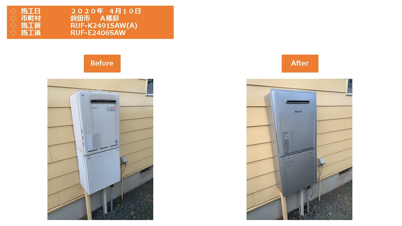 ガス風呂給湯器の取替工事 静岡県磐田市 リンナイ RUF-E2406SAW の施工事例