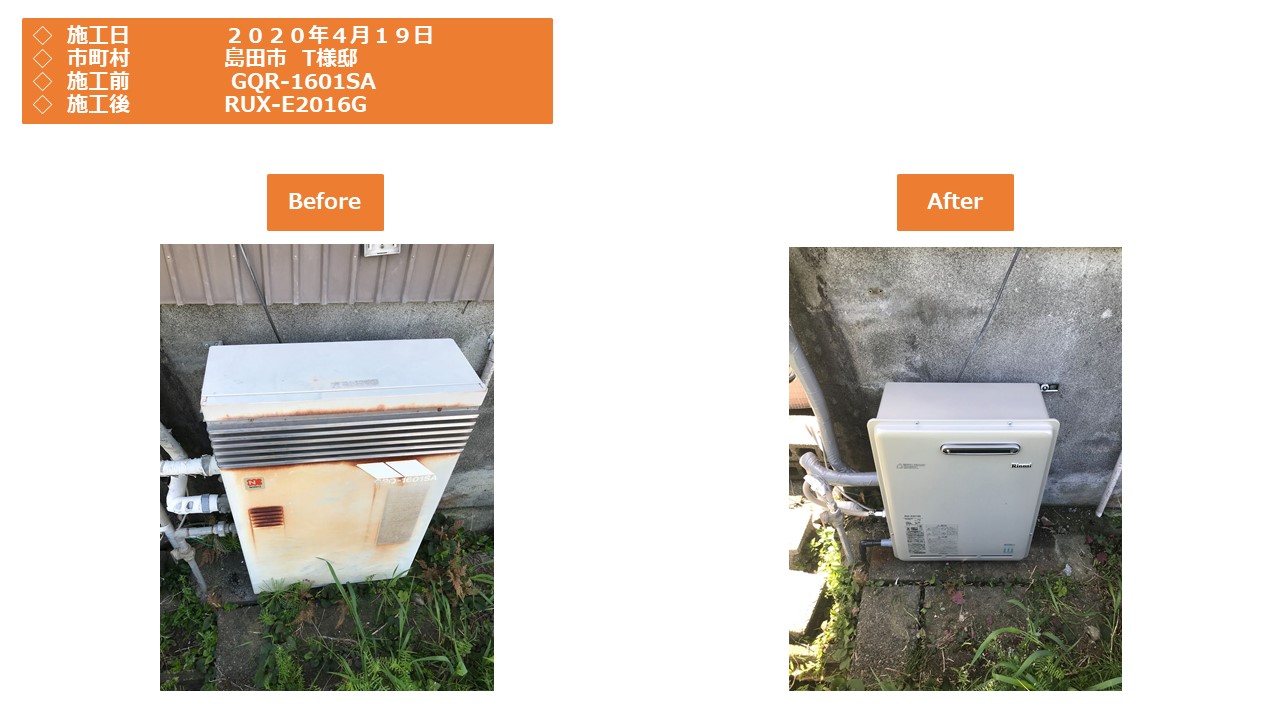 本日は島田市での給湯器施工事例をアップさせていただきます。