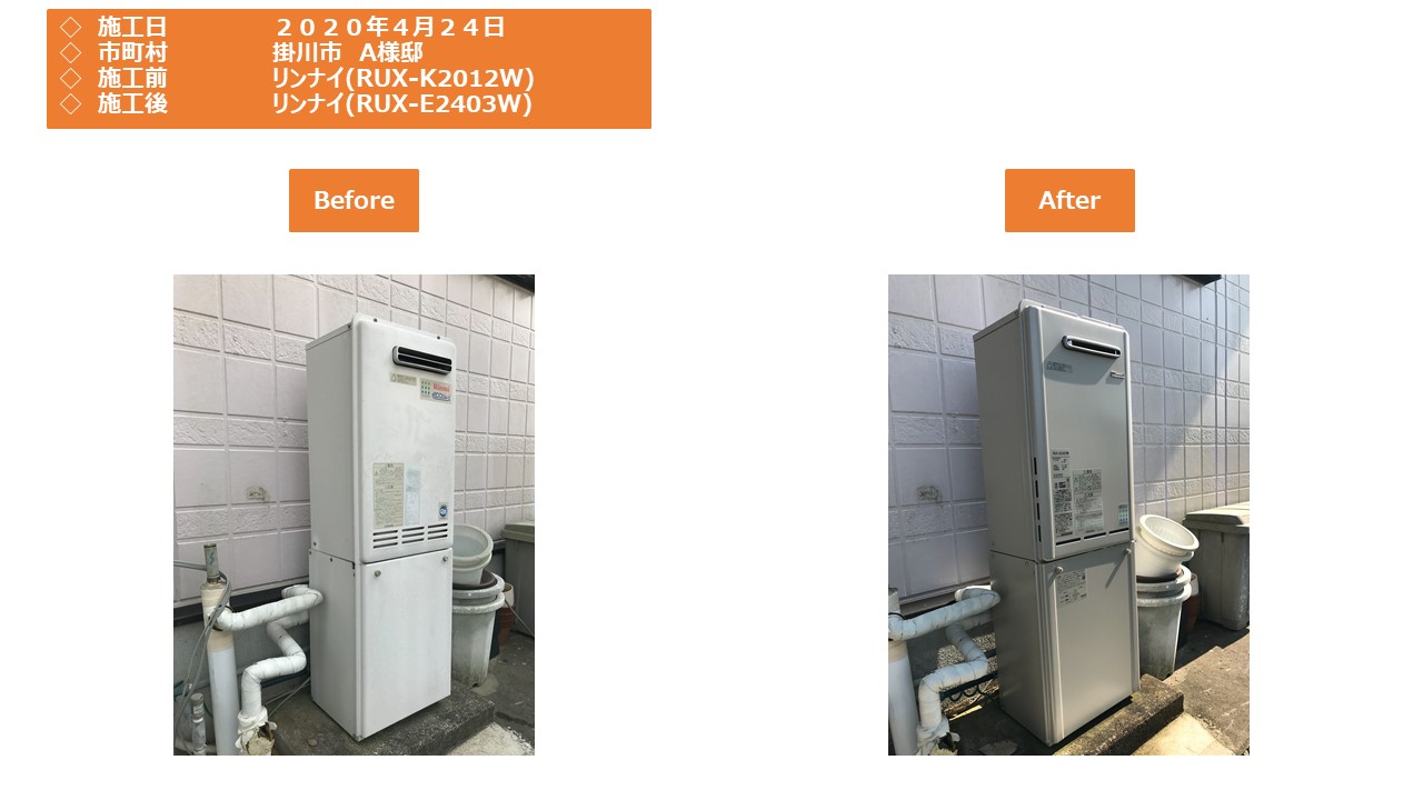 本日は掛川市での給湯器施工事例をアップさせていただきます。