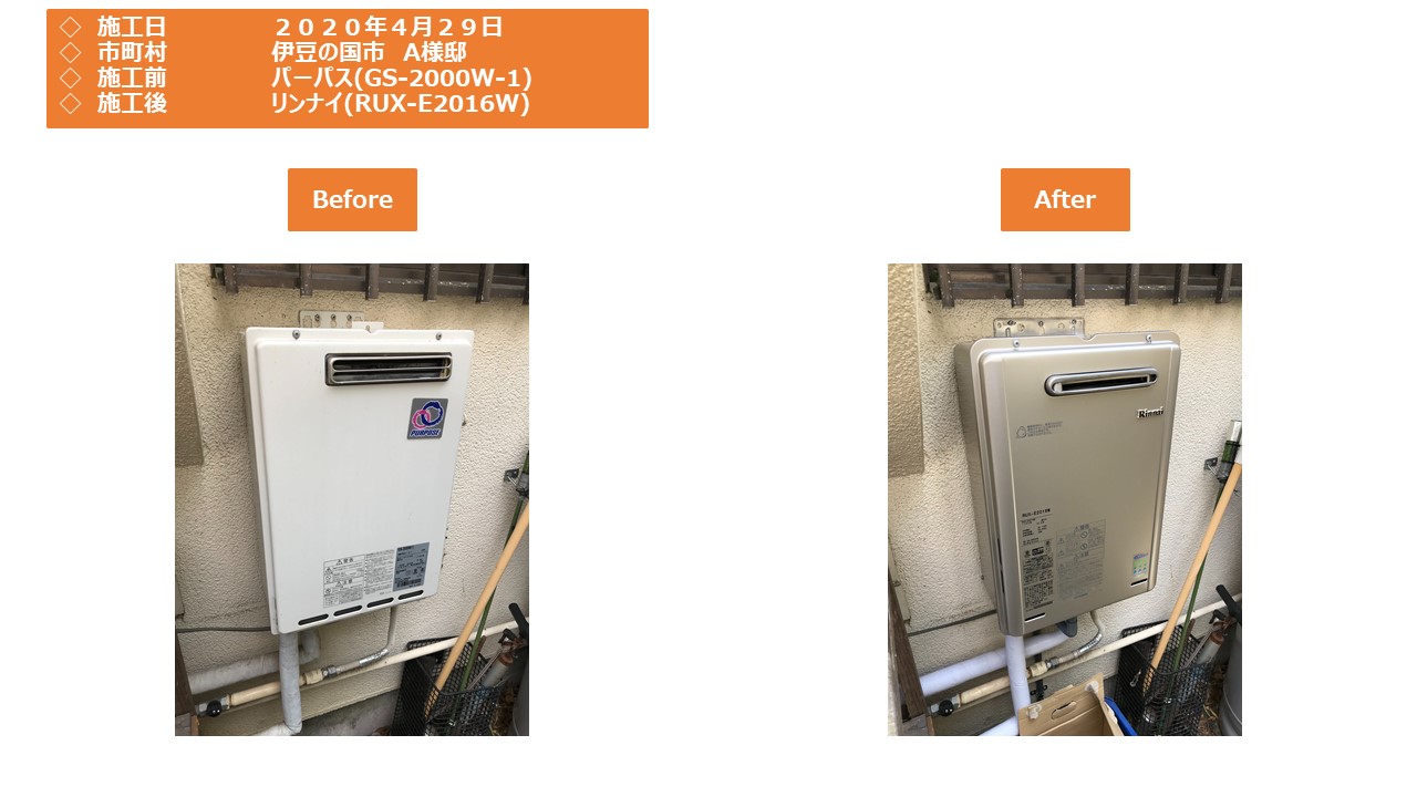 本日は伊豆の国市での給湯器施工事例をアップさせていただきます。