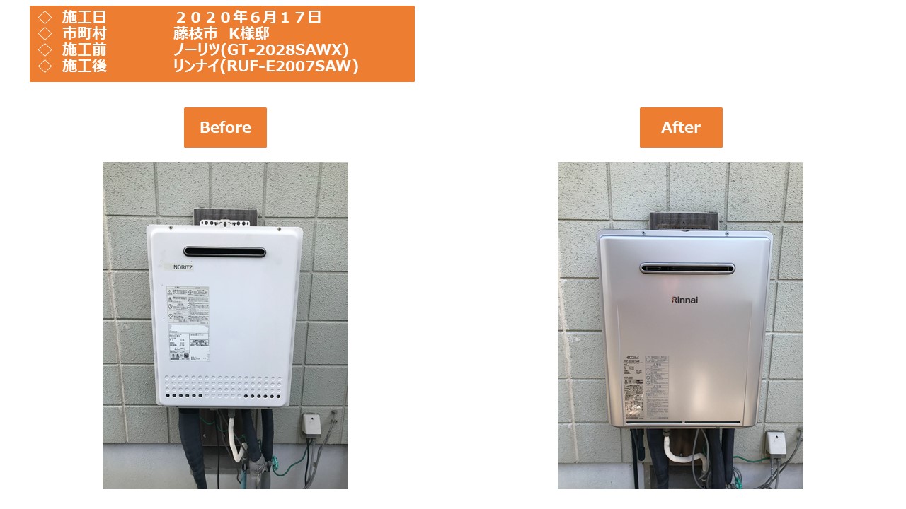 本日は藤枝市での給湯器施工事例をアップさせていただきます。