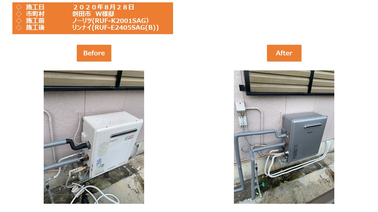 本日は磐田市での給湯器施工事例をアップさせていただきます。