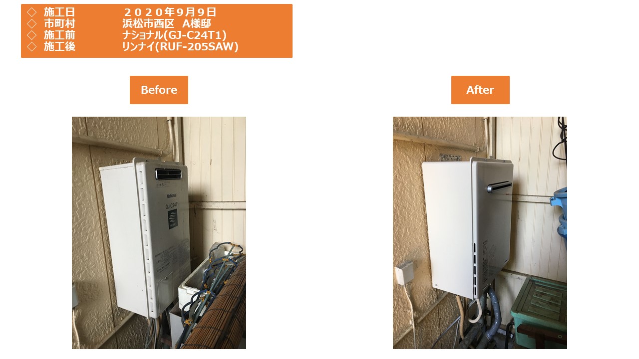本日は浜松市西区での給湯器施工事例をアップさせていただきます。
