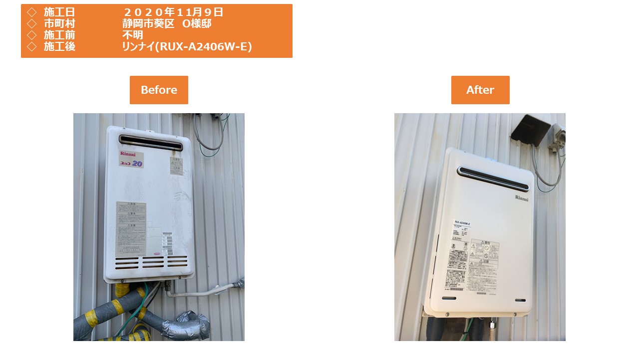 本日は静岡市葵区での給湯器施工事例をアップさせていただきます。