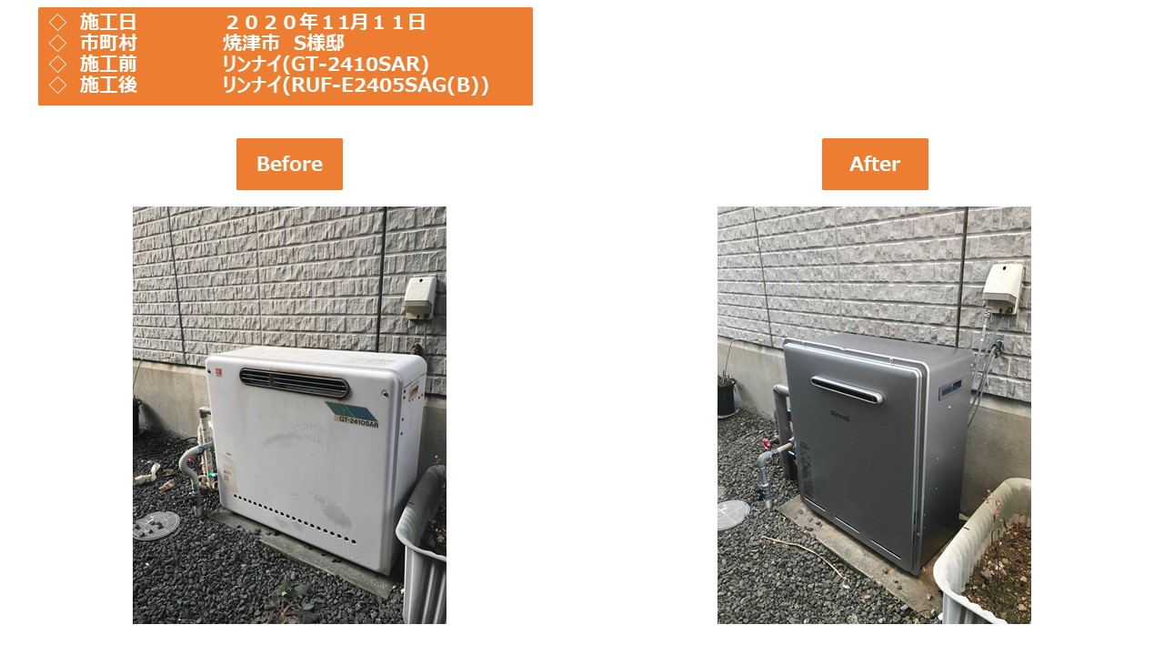 本日は焼津市での給湯器施工事例をアップさせていただきます。