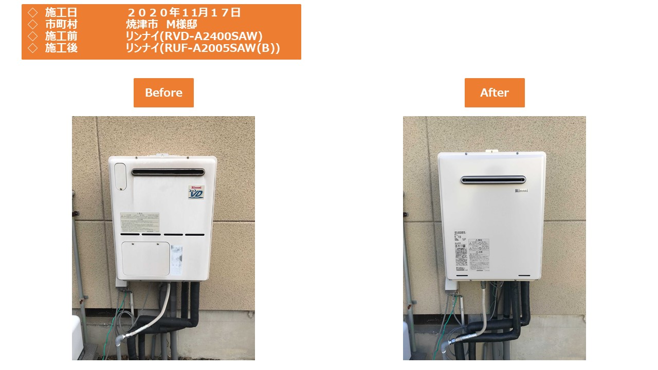 本日は焼津市での給湯器施工事例をアップさせていただきます。
