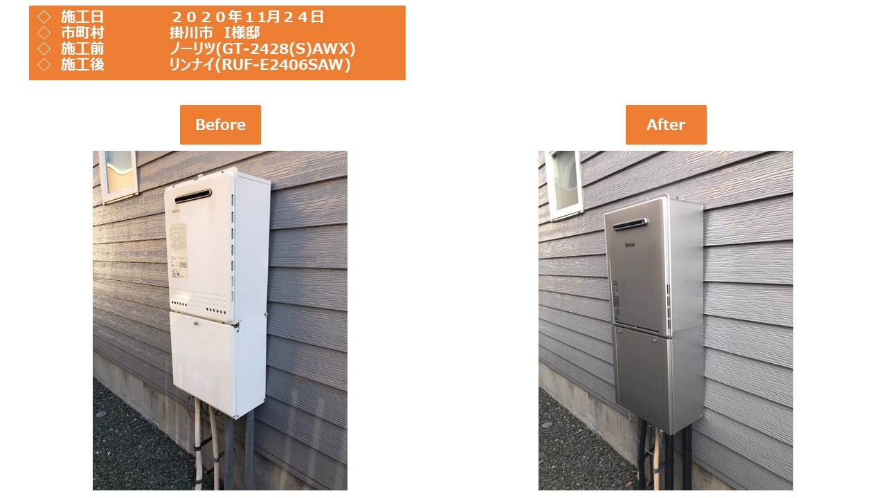 本日は掛川市での給湯器施工事例をアップさせていただきます。