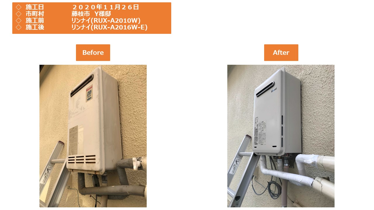 本日は藤枝市での給湯器施工事例をアップさせていただきます。