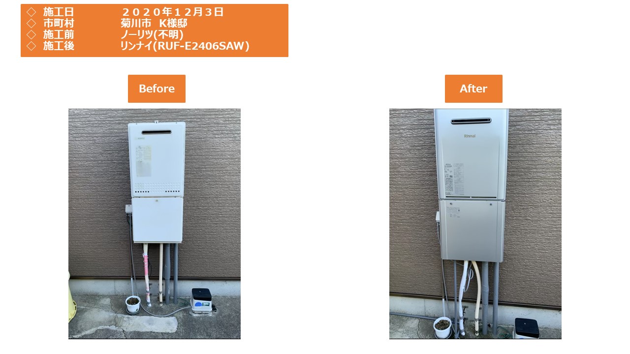 本日は菊川市での給湯器施工事例をアップさせていただきます。