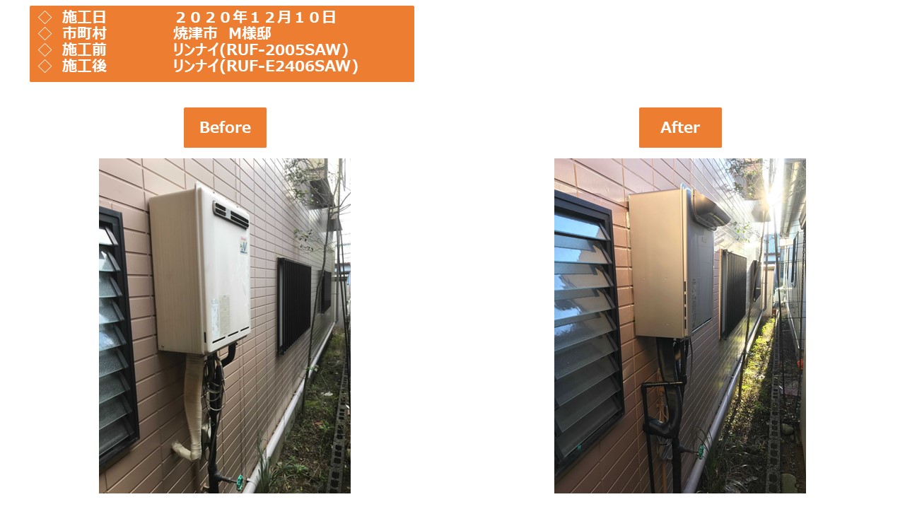本日は焼津市での給湯器施工事例をアップさせていただきます。