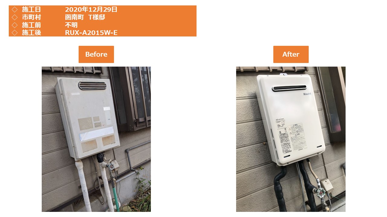 今回のお客様は、リンナイの「RUX-A2015W-E」への交換でした。