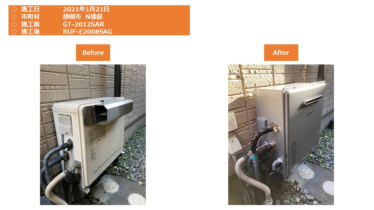 本日は、静岡市駿河区での給湯器施工事例をアップさせて頂きます。