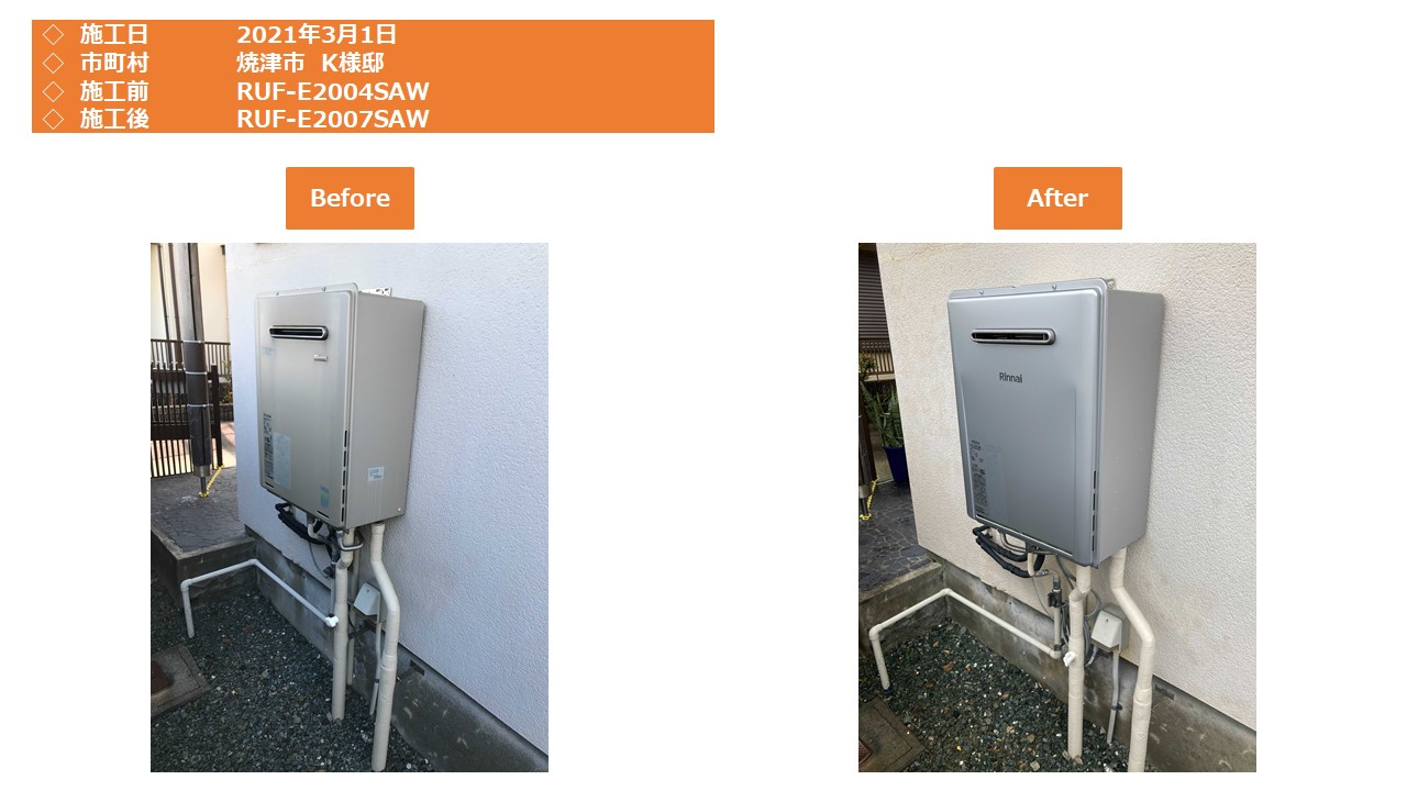 本日は、焼津市での給湯器施工事例をアップさせて頂きます。