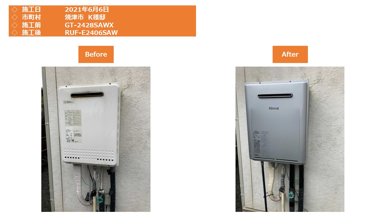 本日は、焼津市での給湯器施工事例をアップさせて頂きます。