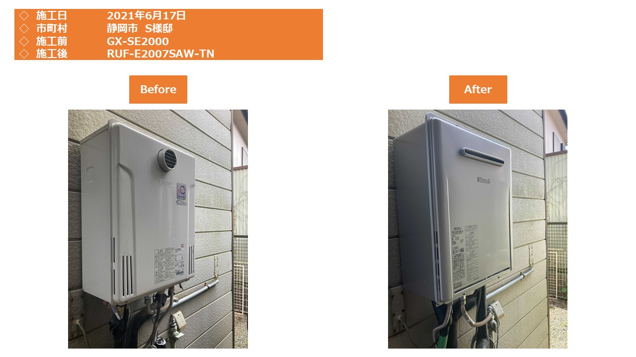 本日は、静岡市駿河区での給湯器施工事例をアップさせて頂きます。