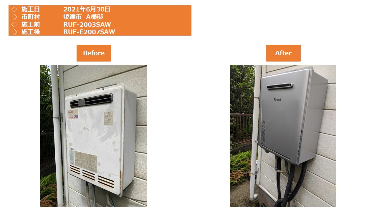本日は、焼津市での給湯器施工事例をアップさせて頂きます。