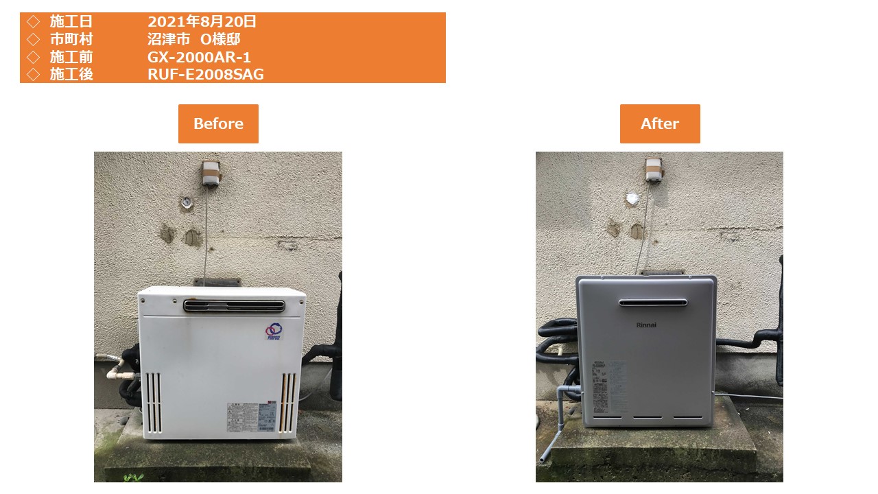 本日は、静岡市葵区での給湯器施工事例をアップさせて頂きます。