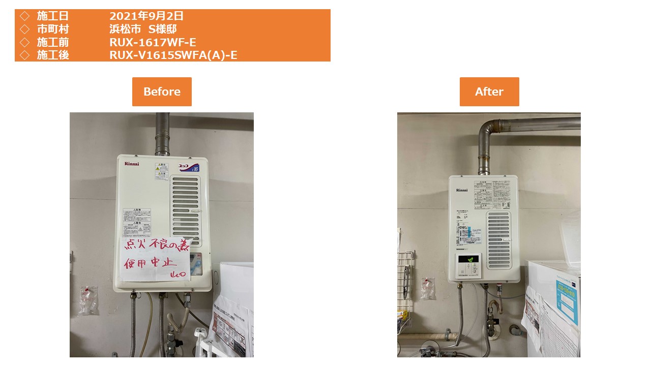 ガス風呂給湯機の取替工事 静岡県浜松市 RUX-V1615SWFA(A)-E の施工事例