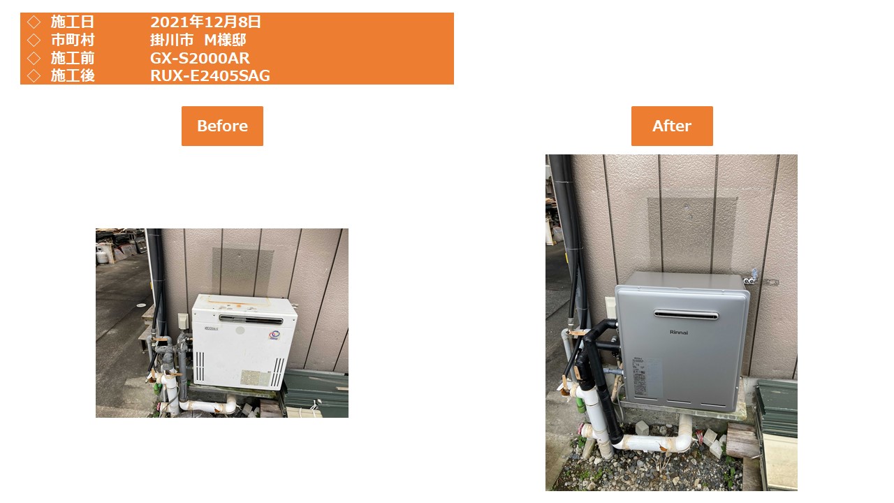 本日は、掛川市での給湯器施工事例をアップさせて頂きます。