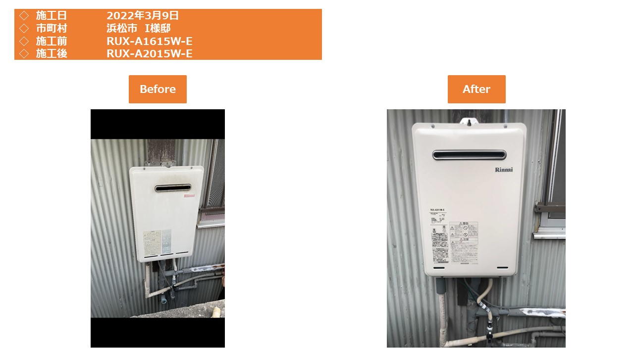 本日は、浜松市中区での給湯器施工事例をアップさせて頂きます。