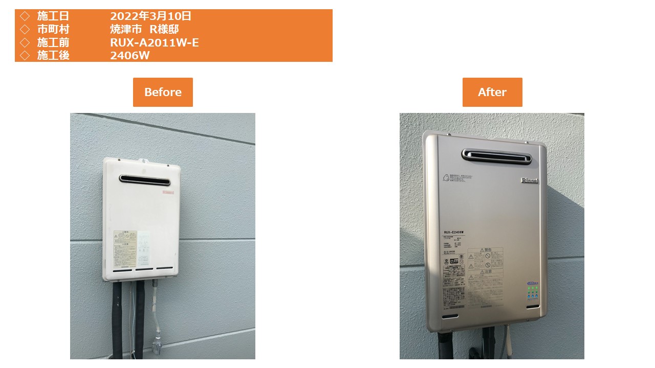 本日は、焼津市での給湯器施工事例をアップさせて頂きます。