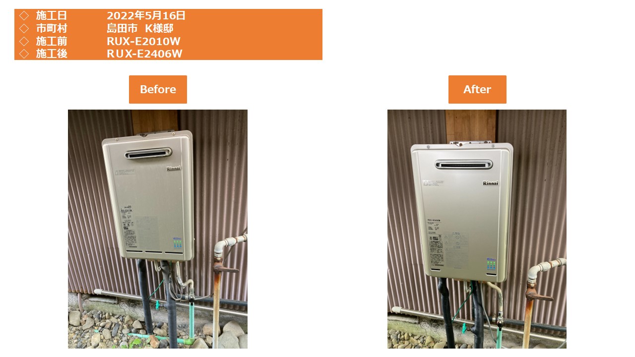 ガス風呂給湯機の取替工事 静岡県島田市 RUX-E2406W の施工事例
