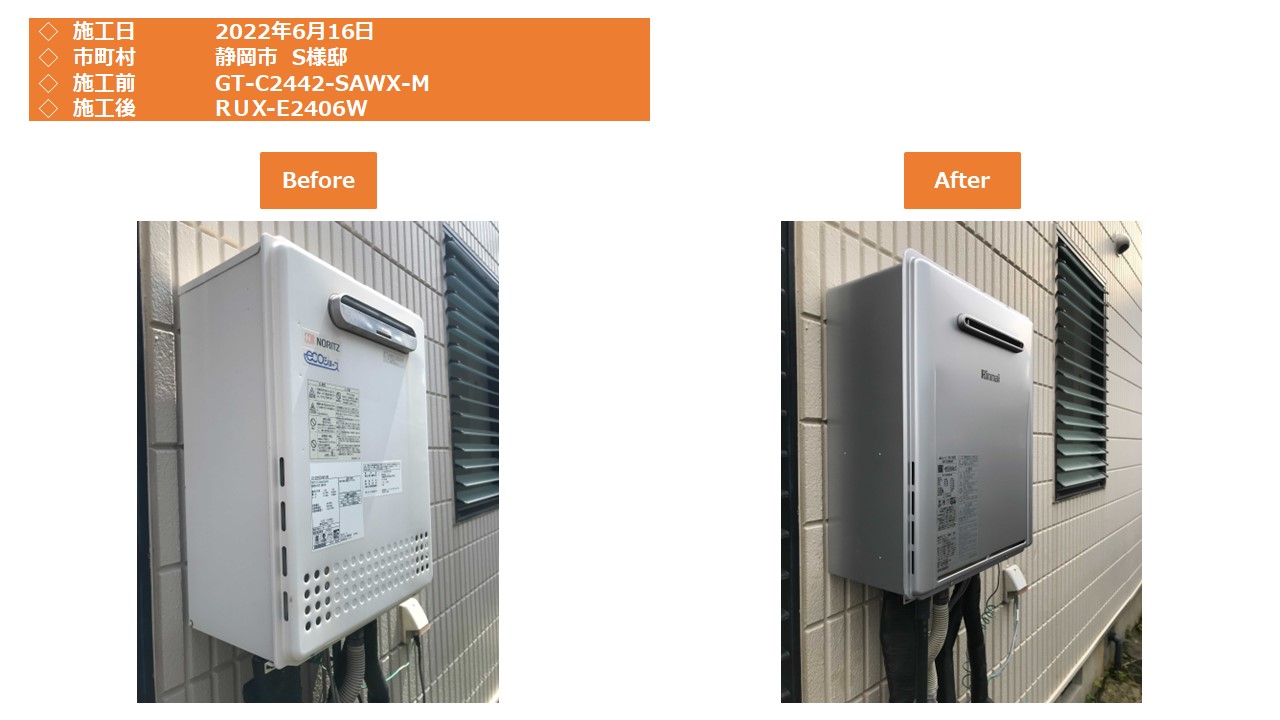 ガス風呂給湯機の取替工事 静岡県静岡市 RUX-E2406W の施工事例
