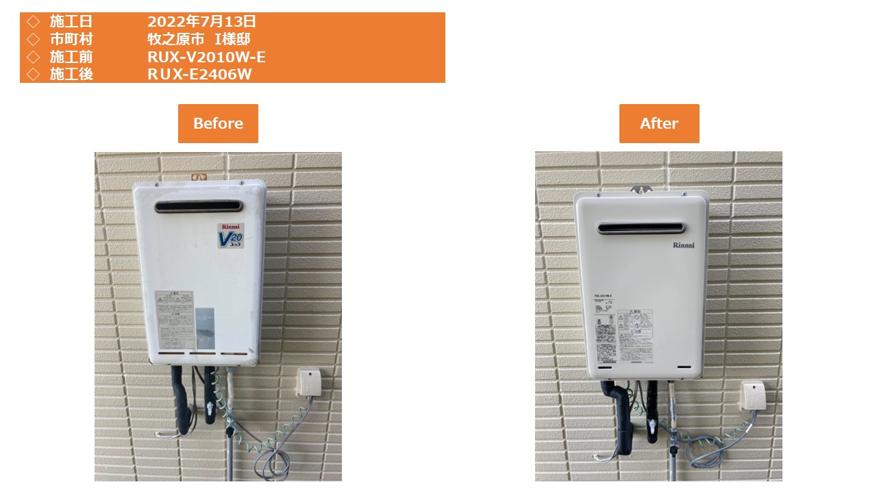 ガス風呂給湯機の取替工事 静岡県牧之原市 RUX-E2406W の施工事例