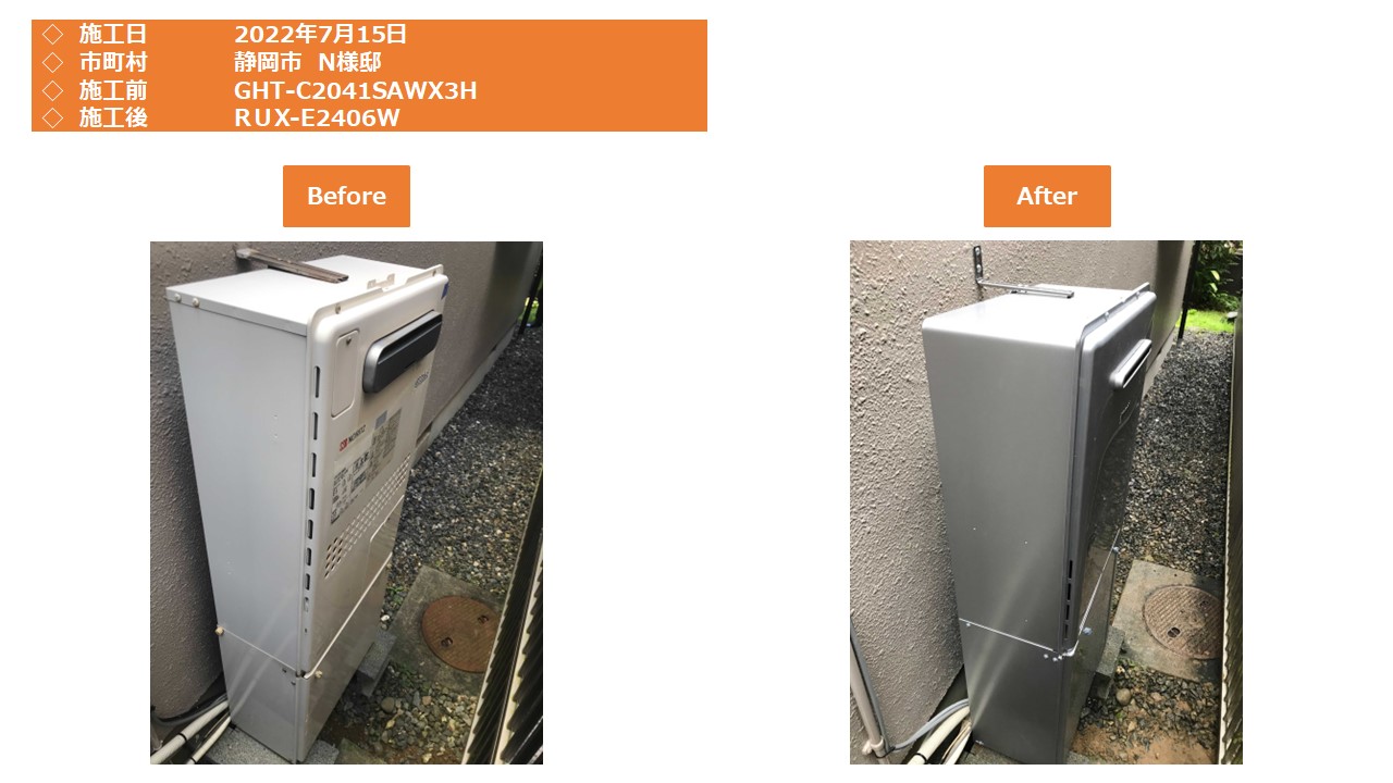 ガス風呂給湯機の取替工事 静岡県静岡市 RUX-E2406W の施工事例
