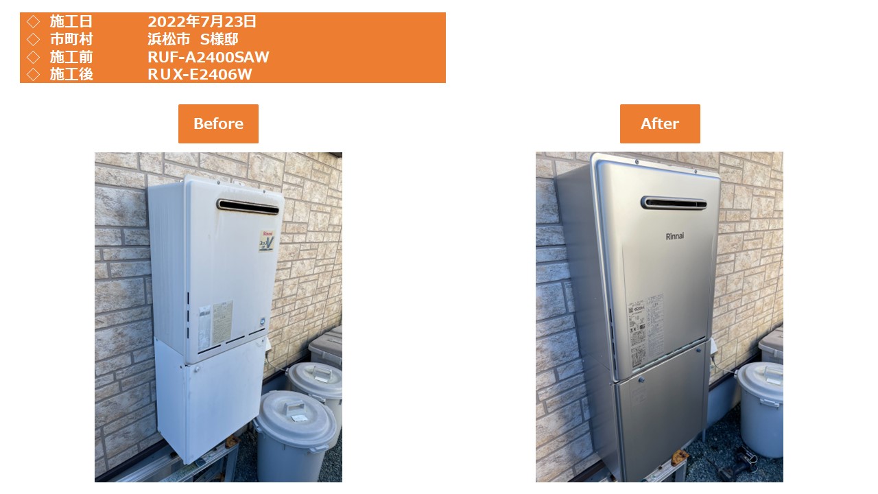 ガス風呂給湯機の取替工事 静岡県浜松市 RUX-E2406W の施工事例