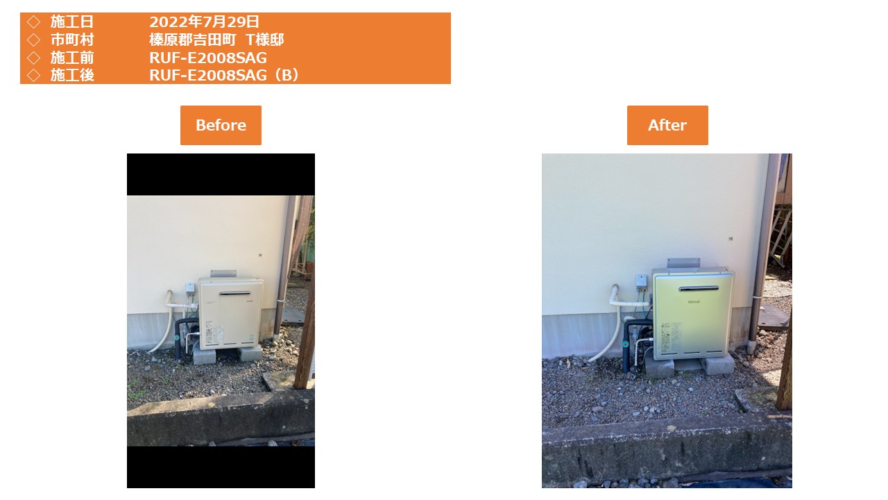 本日は、吉田町での給湯器施工事例をアップさせて頂きます。