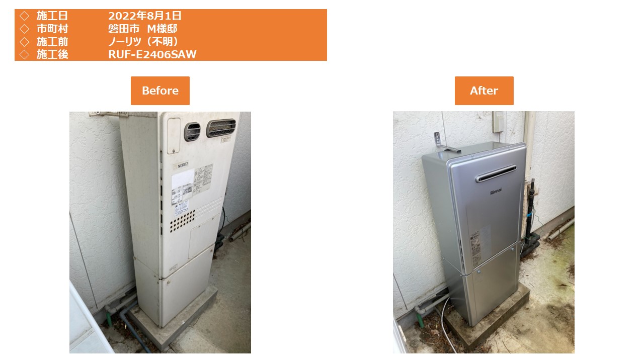 本日は、磐田市での給湯器施工事例をアップさせて頂きます。