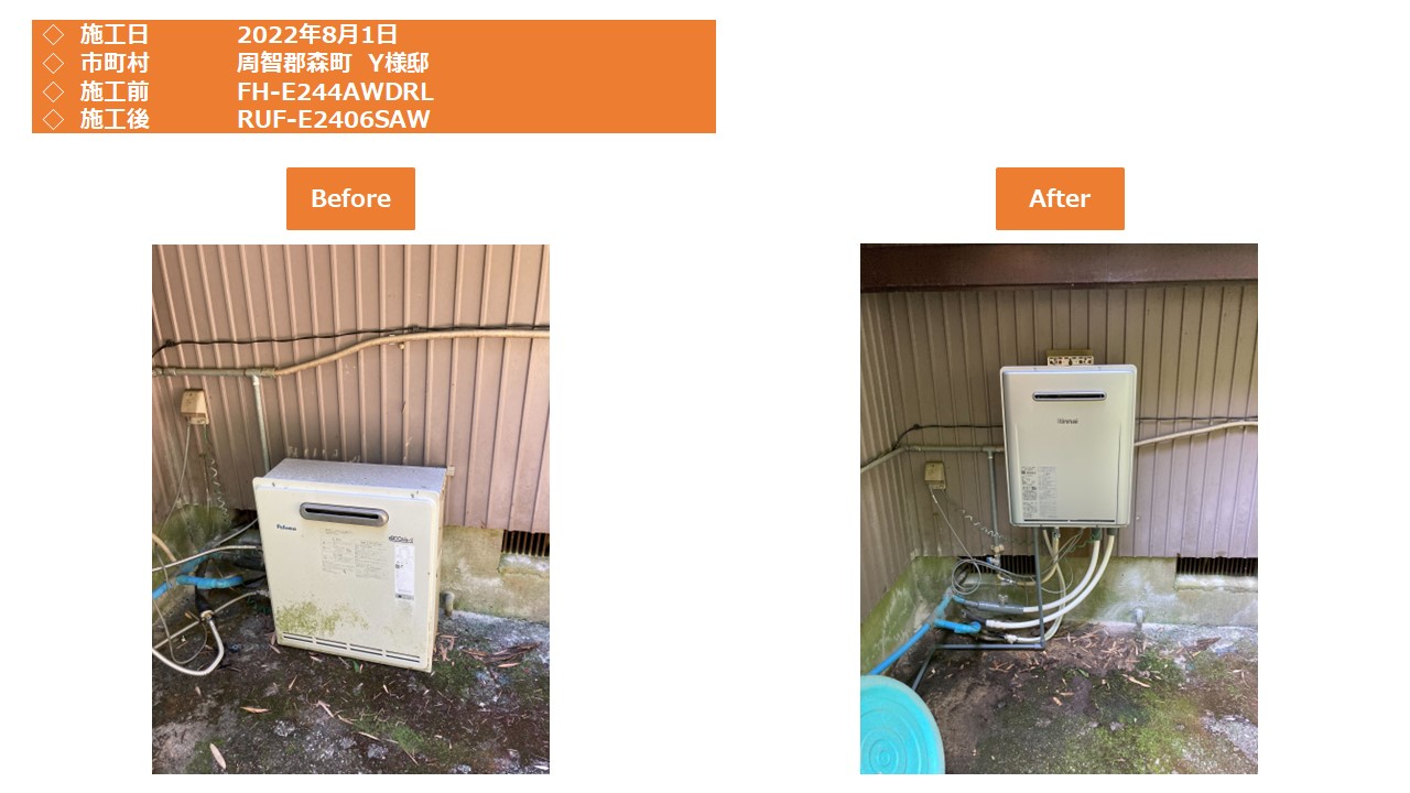 本日は、周智郡森町での給湯器施工事例をアップさせて頂きます。
